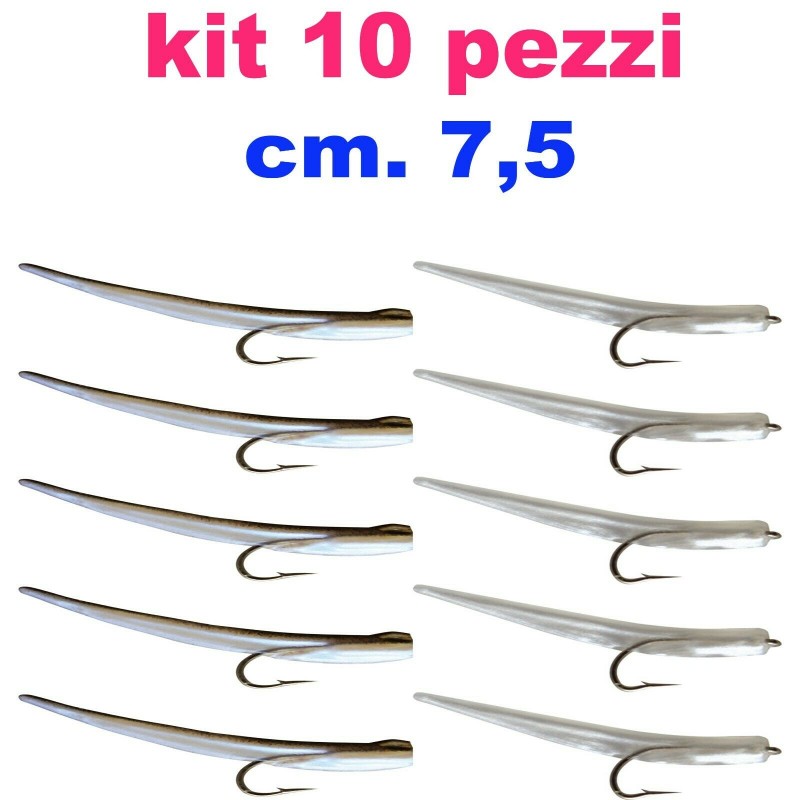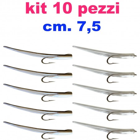 KIT 10 ARTIFICIALI IN SILICONE DA TRAINA O SPINNING CON AMO DI QUALITA' DEL N. 2 GIA MONTATO.