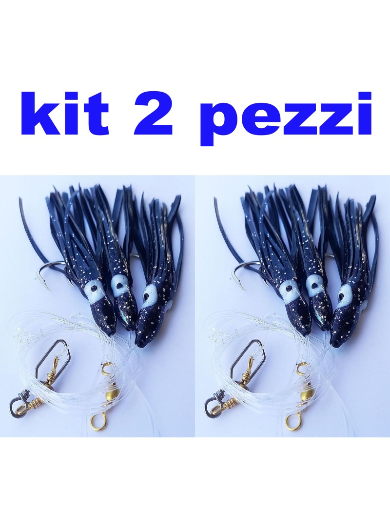 tre octopus di cm. 7 armati con amo 4/0 su braccioli di cm.10 dello 0,70