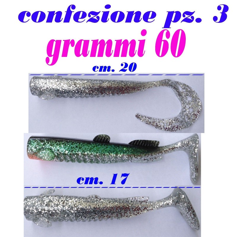 colorazione arricchita da glitter. ottime esche artificiali per pesca a spinning sia in lago o fiume per luccio o siluro