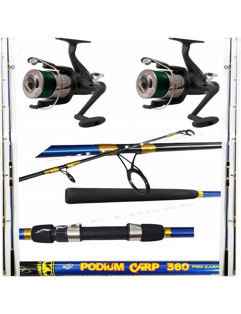 KIT 2 CANNE PESCA CARPFISHING + 2 MULINELLI