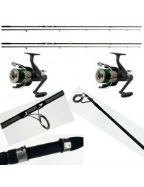 KIT PER LA PESCA ALLA CARPA COMPOSTO DA DUE CANNE E DUE MULINELLI CON DOPPIA FRIZIONE E FILO.