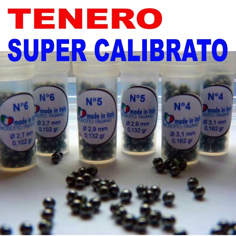 PIOMBI SPACCATI SUPER CALIBRATI. CONFEZIONE DA 20 GR CONTENENTE PALLINI IN PIOMBO TENERO, SPACCATI PERFETTAMENTE, TAGLIO CENTRALE.